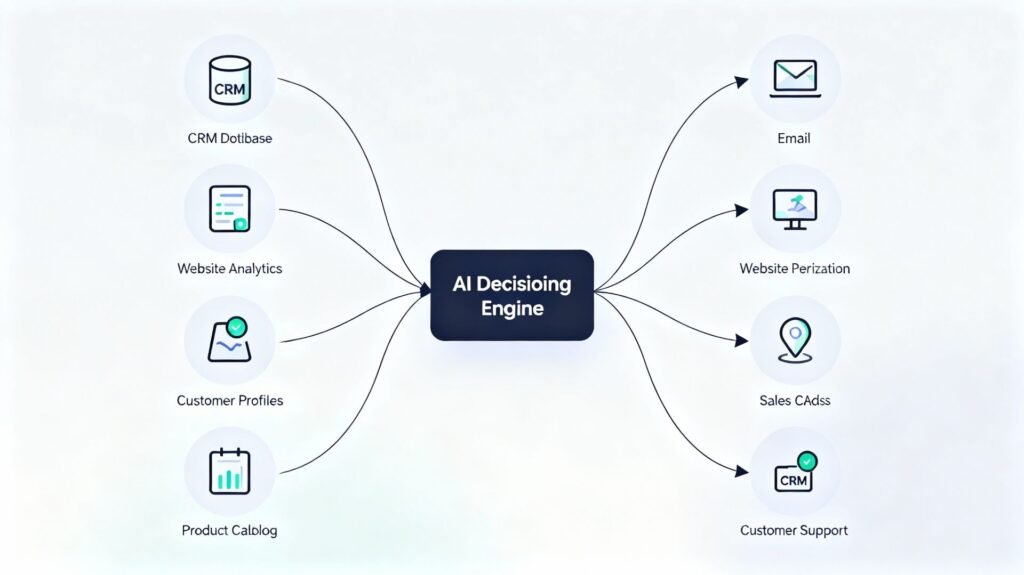 It acts as an intelligence layer across your ecosystem — interpreting signals, predicting intent, and orchestrating the next best action in real time. It doesn’t replace marketers; it changes what they spend their time on. It doesn’t require perfect data; it learns from patterns and improves continuously.